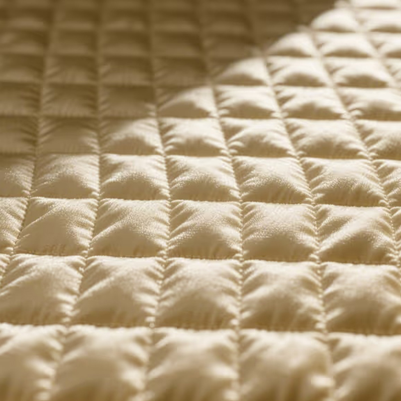Az Imitation Brocade Diamond Grid Fabric egy csúcsminőségű szövet, amelyet kitűnő jacquard kivitelezéssel szőnek. A felület finom gyémántmintákat mutat be, nyilvánvaló háromdimenziós és rétegzett érzékkel. Fényének és textúrájának köszönhetően az anyag visszafogott luxust mutat, és a modern divattervezés fontos választásává válik. A szövet kifinomult jacquard dizájnja nemcsak vizuális hatását erősíti, hanem a művészet és a modernség egyedi érzetét is kölcsönzi a teljes terméknek. Elegáns mintáinak és erős háromdimenziós érzékének köszönhetően ezt a szövetet széles körben használják divattáskákban és ruhadíszítésekben.