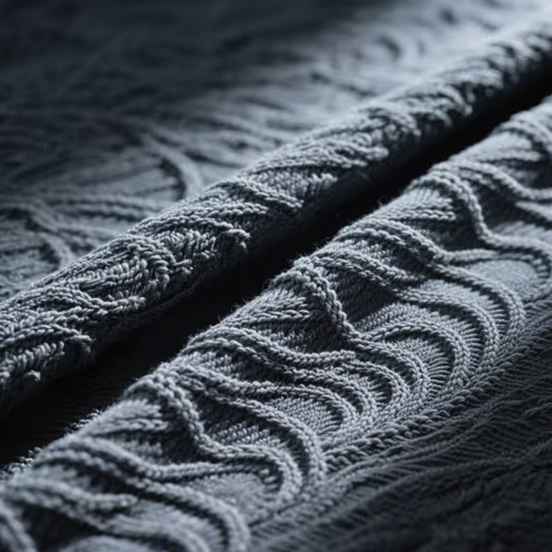 A Transfer Jacquard Fabric egy jacquard szövet, amely innovatív transzfertechnológiát használ. A felület gyönyörű üreges vagy homorú és domború mintákat mutat, egyedi rétegzettséget és háromdimenziós hatást adva. Ezzel a technológiával a szövet mintája összetettebbé válik, egyedi művészeti érzéket és vizuális effektusokat mutatva, és javítja a tervezés általános érzékét. Az anyag kiváló légáteresztő és puha tapintású, és különösen alkalmas nyári ruházati cikkek, például pulóverek, ruhák, stb. gyártására. Hatékonyan képes fenntartani a légáteresztő képességet és a kényelmet, alkalmazkodik a meleg időjáráshoz, és felfrissíti viselőjét. A szövet egyedi mintája és finom textúrája ideális választássá teszi dekorációs anyagokhoz is, és széles körben használják a lakberendezés területén. Művészi hangulatot kölcsönözhet a háztartási cikkeknek, például függönyöknek, párnáknak, asztalterítőknek stb., divatosabbá és elegánsabbá téve az otthoni környezetet.