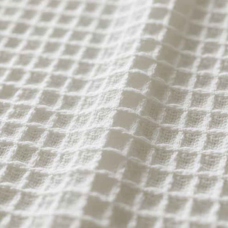 A Waffle Knit Comfort Fabrics egyedi rácsszerű konkáv-domború textúrájú szövet. Felülete gofri formájú, mely kiváló légáteresztő és kiváló izzadságelszívó képességgel rendelkezik. Ez a szerkezet lehetővé teszi, hogy az anyag hatékonyan felszívja a nedvességet és gyorsan elvezeti az izzadságot, szárazon tartva a bőrt. Nagy intenzitású edzés közbeni viselésre alkalmas, és gyorsan felszívja és elpárologtatja az izzadságot, hogy biztosítsa a kényelmet edzés közben. A Waffle Knit anyag könnyedsége és puhasága nyáron nagyon kényelmes viseletet biztosít. Széles körben használják nyári ingek és egyéb ruházati cikkek gyártásában, hogy a testet meleg időben hűsítsék. Jó légáteresztő képessége és izzadságelvezető funkciója miatt ez az anyag kiválóan alkalmas sporttörölközők készítésére, hogy a sportolók gyorsan letöröljék az izzadságot, és edzés közben szárazak maradjanak.